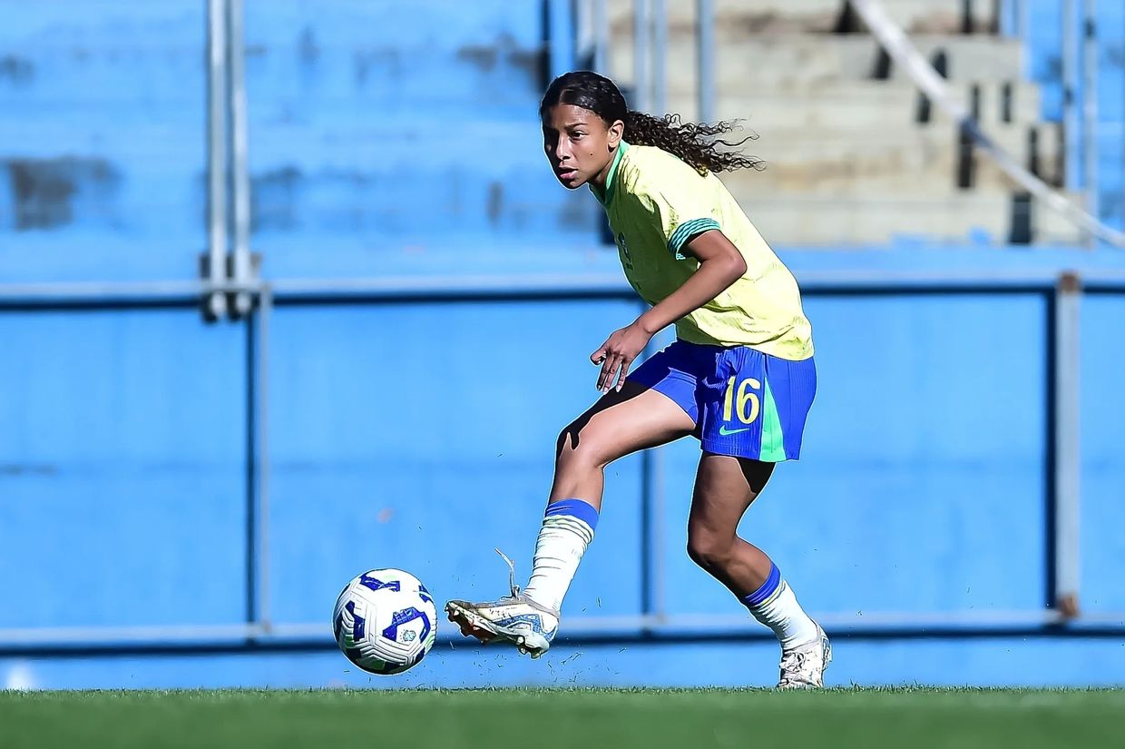 A meio-campista Kemilly, destaque do Raio Amado no Paulista Feminino Sub-15, entrou para a história ao se tornar a primeira atleta do clube a vestir a Amarelinha.